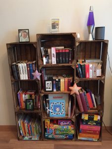 Kisten aufeinanderstapeln und dann einfach miteinander verschrauben. Hier gibt es keine Vorgaben, einfach testen was euch am Besten gefällt. Kleine Anregungen kann man sich bei Pinterest holen. Natürlich erst mit dem Holzbohrer ein Loch vorbohren ? Dann ist es einfacher!
